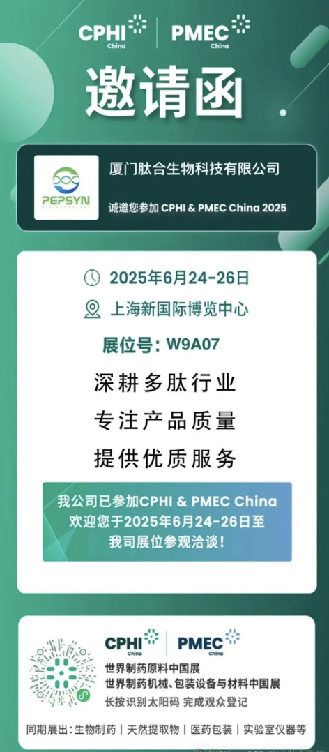 肽合生物诚挚期待与行业同仁相聚上海,共赴这场融合前沿技术展示、深度商务洽谈与高端学术交流的盛宴。